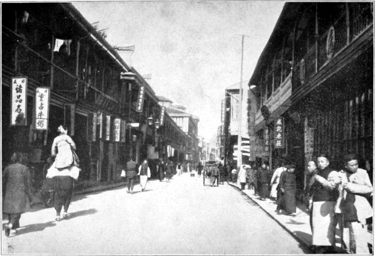 Im Schanghaier Sprachgebrauch ist das Wort „Fu-tschou lu“ nicht sehr häufig. Wenn ein Einheimischer nach der Fuoochow Road geht, dann geht er nach dem „Vierten Pferdeweg.“ Die Hauptstrassen der internationalen Niederlassung haben sich nämlich die Chinesen in Ma-lu (wörtlich: Pferdeweg) eingeteilt. So ist zum Beispiel die Nanking Road der „grosse Pferdeweg“, die erste Parallelstrasse der „erste Pferdeweg“, die zweite, der „zweite Pferdeweg“, und so fort. Von allen Pferdewegen hat aber der vierte den besten Klang: Sze-ma-lu ist ein Schlagwort, das weit mehr sagt, als die nüchternen Worte ahnen lassen. Mit dem Szemalu sind die Gestalten pfirsichfarben geschminkter und winzig befusster Mädchen, Politik, Theater, aus der Kehle gequetschter und mit der Fiedel begleiteter Gesang, die neuesten Witze, schlemmerhafte Restaurants und langverandige Teehäuser auf das Engste verknüpft, kurz, der Szemalu ist „die“ Strasse Schanghais, wenn nicht ganz Chinas. Daraus erhellt, dass der Szemalu die Strasse der chinesischen Lebewelt ist. Bei Tage unterscheidet sich die Foochow Road kaum von den übrigen Pferdewegen. Sie trägt dann ein nüchternes, geschäftsmässiges Kleid; in der Luft liegt der Schweiss des Alltags, ausgehaucht von heissgelaufenen Rickschakulies und Lastträgern, vermischt mit Gerüchen, die den Läden entströmen. Die Menschen, die sich durch die Strassen bewegen, tun es nicht zum Zeitvertreib und zum Vergnügen. Jeder hat seine Bestimmung. Wer also bei Tage als studientreibender Ausländer die vielgerühmte Foochow Road durchwandert, der wird enttäuscht sein; denn ihr Bild ist ebenso alltäglich und farblos wie das jeder andern Strasse der Niederlassung. Er muss trotzdem aber einmal bei Tage durchgewandert sein, um die Folie für Das zu haben, was die Augen am Abend erschauen.