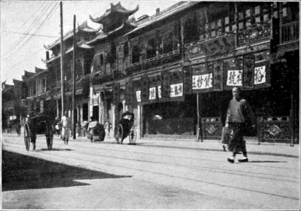 Jetzt kreuzen wir die Strasse und betreten die deutsche Buchhandlung. Während wir die neu eingetroffenen Bücher ansehen, kommen einige Chinesen und zuletzt eine Chinesin in den Laden. Ich weiss bestimmt, wenn Sie Verkäuferin wären, dass Sie in Ihrem Schanghaier Kosmopolitismus gefragt hätten: „Woat ting wantschie?“ Aber lauschen Sie nur. „N’ Tag, möchte mir ’mal Ihre Bücher ansehen.“ Ein junger Chinese spricht es in fliessendem Deutsch und begibt sich auf die Wanderung durch die Menge der ausgelegten Bücher. Ein anderer tritt ein und spricht, den Oberkörper steif biegend, kurz und abgehackt militärisch deutsch: „Famoses Buch, die Kriegsgeschichte von General Müller. Ist mir leider während der Revolution abhanden gekommen. Möchte nachbestellen. Sein Sohn stand übrigens mit mir in Halberstadt in Garnison.“ Und er kauft sich die neuen deutschen Dienstvorschriften, einen Kriegsroman und einen Neuruppiner Bilderbogen von der preussischen Garde für seinen Jungen. Und von den anderen Chinesen nimmt der Eine ein technisches Fachwörterbuch, der Andere die Verfassung des Deutschen Reiches, und wieder ein Andrer interessiert sich für Berg- und Hüttenwesen. So geht es Tag für Tag. Sprechen solche Augenblicksbilder in dem deutschen Buchladen nicht ganze Bände? Sieht man nicht daraus, wie sich merklich das Interesse für deutsches Wesen unter den Chinesen zu regen beginnt. Ist es nicht ein Stückchen geistige Revolution? Doch beinahe hätten wir die junge Chinesin vergessen. Sie steht ein wenig schüchtern abseits und endlich verlangt sie — Hand aufs Herz — das bekannte Buch vom „imponierenden Auftreten“ und ein Werk über moderne Frauenfragen.
