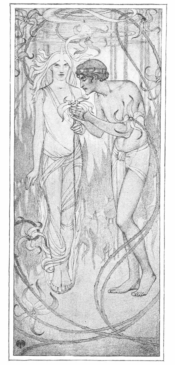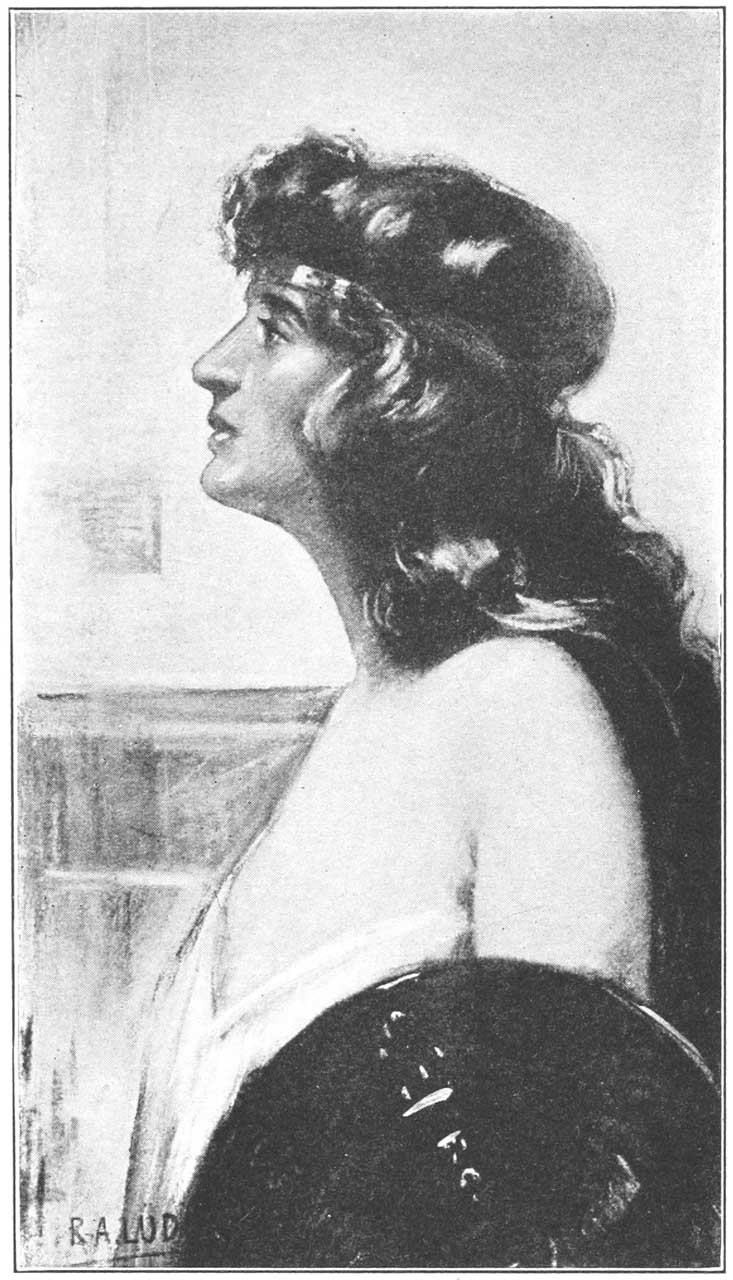 Venus, her cold beauty marred by a frown of discontent, was the center of a murmuring group, to whom she spoke in words of passion: