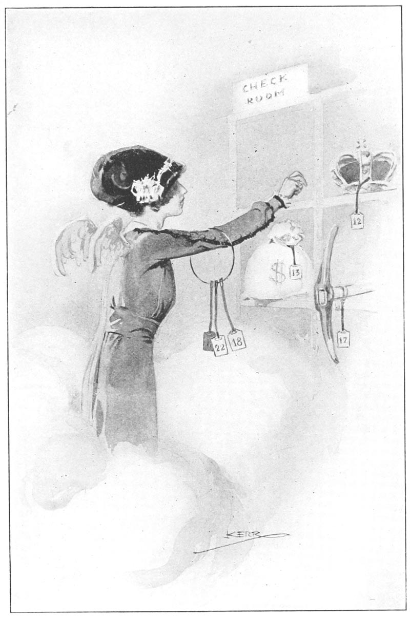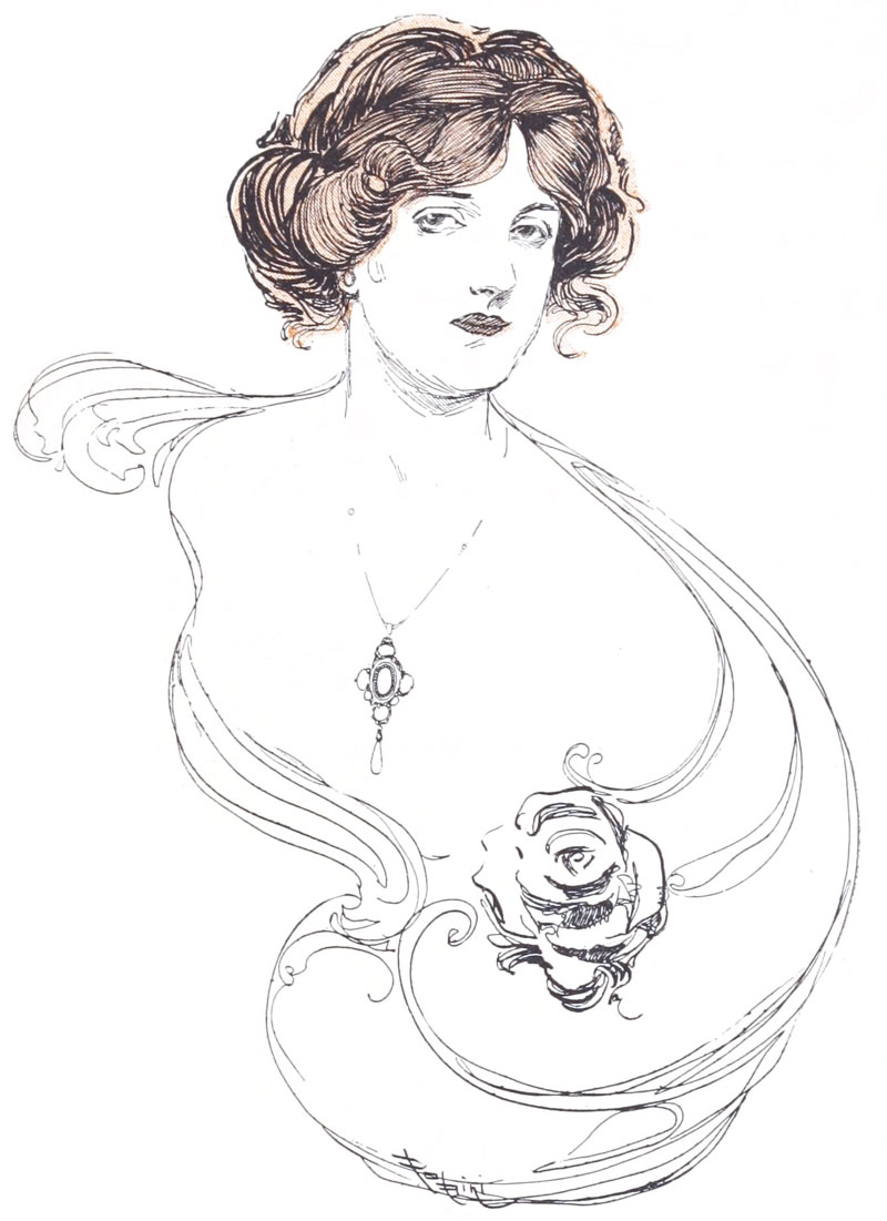 The List of Contributors mentions a W. Krieghof, but the poem A TOAST was said to be illustrated by Krieghoff, and that is also the signature on the illustration. The Tale of the Store Girl was illustrated by “Adrian Machefert”, but the List of Contributors mentions an “Adrien Machefert”. A Song was written by “Philip Verrill Mighels”, but the List of Contributors has it “Phillip Verrill Mighels”. The Old, Old Prayer was supposedly written by “John W. Postgate”, but the List of Contributors mentions only “J. W. Postgare”.