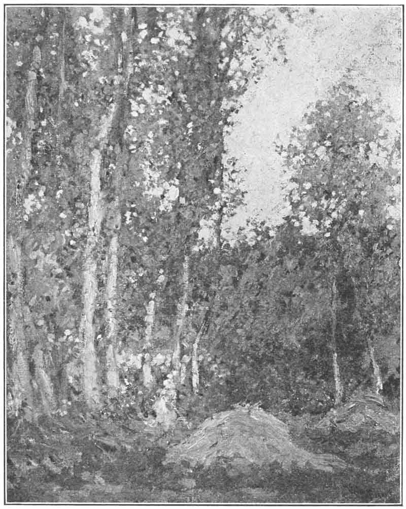 This takes in all the schools, as well as the fiery, untamed spirits who would break away from schools altogether. Art is always the same; temperaments differ and become warped. The academician’s temperamental glass is ruled off into formal geometrical patterns, and he sees nature as a kind of problem in perspective. The rabid “impressionist” looks within himself, and away from nature, and “sees things” which don’t exist for anyone else. The true artist gazes straight out upon nature, and forgets himself, and art comes to him “as easily as lying.”