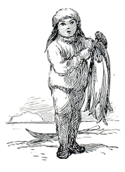 Our coal at last came to an end, and for fourteen days strong head-winds baffled us; day after day the two ships beat about in fog and storm, through fleets of icebergs that would have made us very uncomfortable if we had not learnt implicit confidence in our officers of the watches. Finally the weather moderated, and we reached Disco on 25th September. Every Eskimo that came on board looked like an old friend. We were most kindly received by all the inhabitants, from the Danish Inspector, who shared his small stock of coal with us, to the young urchins that kept us supplied with delicious fresh fish. Poor people! they were more in need of help from us than we were from them. The season had been a bad one, and scurvy was very prevalent both at Disco and Egedesminde. Even the little children looked miserably withered and weak, and we were glad to have some little remains of our mess stock to serve out amongst them.