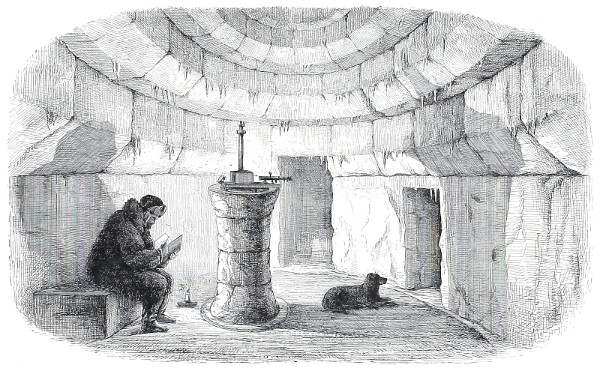 | End of Twilight—Moonlight—Daily Life in Winter Quarters—Condensation—Breakfast—Morning Prayers—Outdoor Work—Exercise—The Ladies’ Mile—A Walk to Flagstaff Point—Sounds from the Pack—Optical Phenomenon—Dinner—Our Cat “Pops”—Occupation during Winter—Mock Moons—“Sally”—The Darkness, | 40 | |
