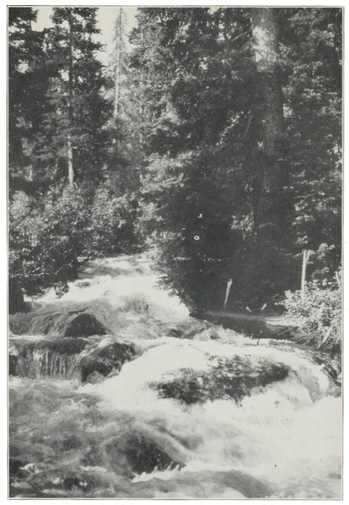 SOME unpoetic old frontiersman first called the place a trapper’s “hole,”—an ugly, misleading name for this wondrous mountain valley, lying up there on the western slopes of the Continental Divide next to the Yellowstone country, almost surrounded by a rim of craggy, snow-streaked mountains, and grassy, wooded hills, out of whose picturesque canyons streams came leaping and sparkling to make a silvery network over the valley floor and to combine at last into the beautiful river that winds along the base of the western hills. This web of streams may still be traced as one gets a kind of bird’s-eye view of it from the hills above; but irrigation has given a conventional aspect to the valley floor by checkering it with farms, dotting it with regularly laid out towns and cities, and marking it with surveyors’ roads and canals.{2}