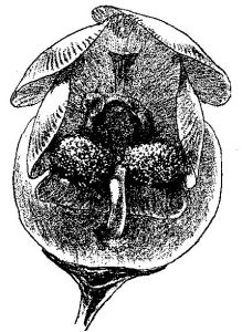 The plant known as the Drosera, or Sundew, is very curious, and is well worth watching, for it is what is called insectivorous. That is, it eats insects for food. Its leaves are covered with bristles, and on the end of each bristle is a drop of sticky secretion which, when the sun shines on it, looks like dew, hence the common name. But if a fly or other insect lights on the leaf, he gets caught. Then the outer bristles turn towards him, and at last, although it takes about twelve hours, the leaf folds around him. The plant takes all the nutriment from the insect's body, and opens, ready for another catch. It has been proved that a plant fed on animal food is more vigorous than a plant that is not. This Drosera is very common in wet meadows and on the shores of ponds. It has a more expert cousin, the Dionæa. This closes its leaf very quickly, and the insect has no chance to escape.