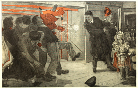 It was a night in June, and the pavements were dry under foot and the streets were filled with well-dressed people, going home from the play, and with groups of men in black and white, making their way to supper at the clubs. Hansoms of inky-black, with shining lamps inside and out, dashed noiselessly past on mysterious errands, chasing close on each other's heels on a mad race, each to its separate goal. From the cross streets rose the noises of early night, the rumble of the 'buses, the 132 creaking of their brakes, as they unlocked, the cries of the "extras," and the merging of thousands of human voices in a dull murmur. The great world of London was closing its shutters for the night, and putting out the lights; and the new lodger from across the sea listened to it with his heart beating quickly, and laughed to stifle the touch of fear and homesickness that rose in him.