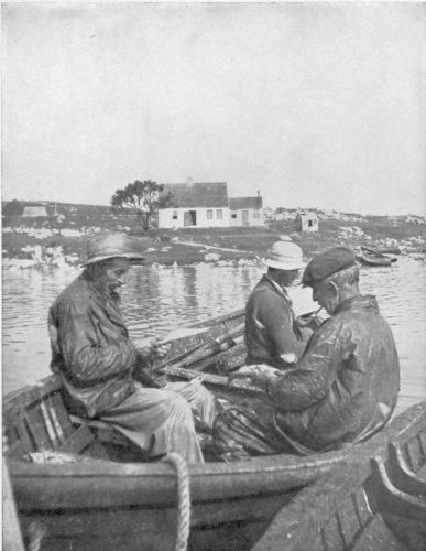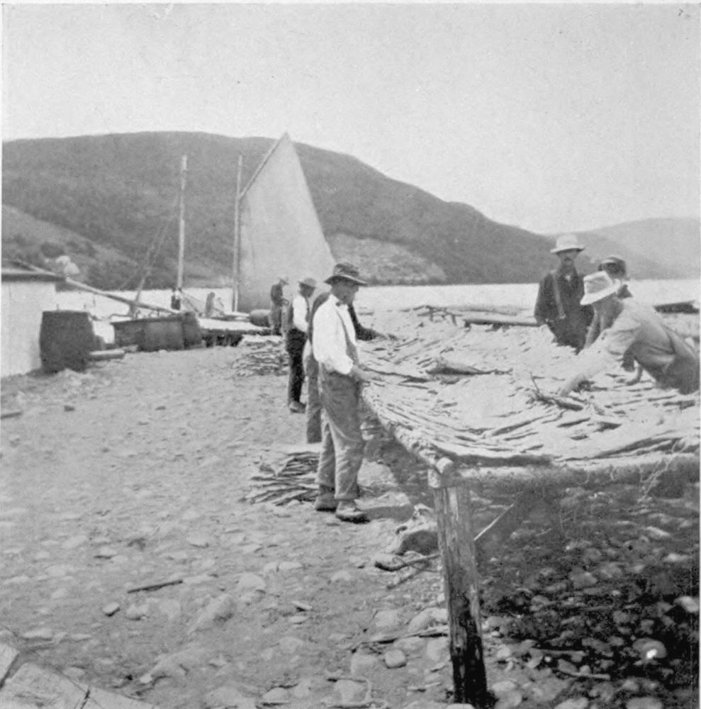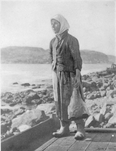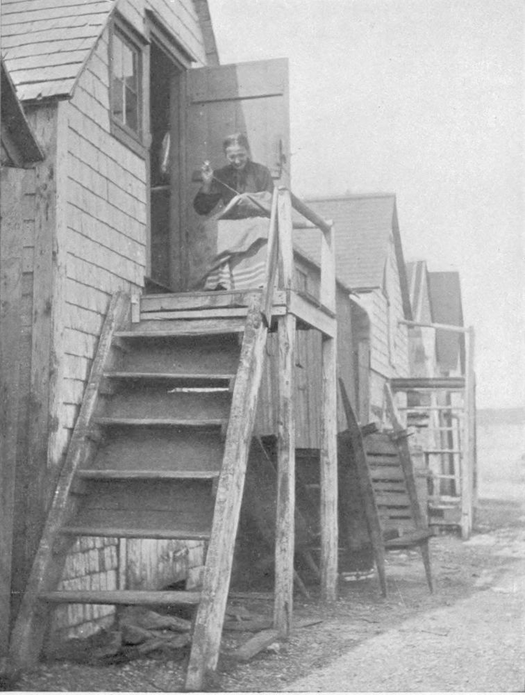 As one follows the long coastal road macadamized by the Maritime, the ‘Longshore men and the ‘Longshore women afford some of the most picturesque genre encountered anywhere in all Canada. They are unique, in that in every individual case, the product is “the Sea-coast’s Own”. And no two of them are exactly alike. They not only mend and reinforce, tar and paint, but they are the Historians, the Spinners-and-Weavers of Traditions, the story-tellers, that keep alive in the hearts of their listeners the sea-spirit—without which, ships are useless. And so, some morning, when you come along over the cliffs, and see a smoke, black as the traditional pine-cone over Vesuvius before the burial of Pompeii, you know that some old fisherman and his pals are tarring the old boat.