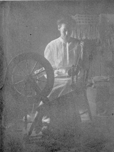 The Russian woman’s flax-wheel is light so that she can easily take it under her arm, spinning here or there, as she wishes, indoor{235} or out. In the heat of the midsummer day, when work in the fields is only pursued early in the morning or in the late afternoon, you find her spinning in her bedroom or on the porch. Or she sits out of doors among the flowers abloom in her dooryard enjoying the blossoms and the shade thrown by peach-trees—laden boughs bending, a symphony in fruit, to lay themselves across the heart of their Earth-mother. Indoors, the blur of the flying shuttle hums a minor accompaniment to the song of the bees busily planing from flower to flower, gathering up the nectar, that, as honey, is later to come to home tables. Then some morning the bolt of linen is finished, the linen that will, with ordinary care, long outlive the women whose industry has brought it into being.
