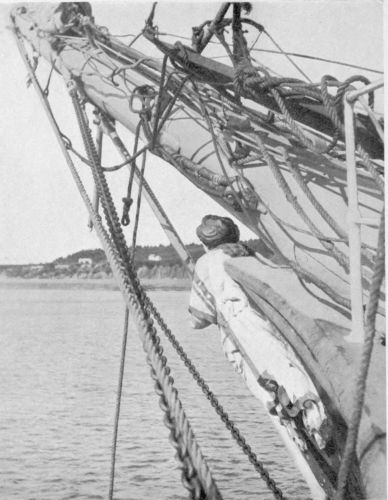 Cod is still, more than ever, King in Bluenoseland and beyond. Over all the vast stretch of the Canadian “Maritime” his huge fleet holds sway. And what is so romantic as a fleet-winged schooner speeding away under full sail on her voyage to the Banks? Unless it be the one coming in, her decks almost awash, with the full load? Oars and sails, and the tripping bows of the Dragon-ships and Breton bateaux founded this long line of “Bankers{4}” and Dories—laid the foundation of Nova Scotia’s talent for ship-building. The “gift” which turned out the big square-riggers from the Hantsport and Parrsboro “ways” was a natural sequence of the maritime beginning of this land, where thought turns so naturally to the sea, and to sea-power. It was those wooden wind-jammers, wind-jammers with mere boat-beginnings, which paved the way to the ocean-greyhounds which now home true to Halifax and Saint John. Oh, the “Maritime” is the life-blood of Nova Scotian and Newfoundlander.