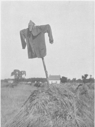 While the horses are resting, the older men come out with pitchforks made from forked branches cut in the woods, and shake up the chaff, the heavier wheat falling to the bottom. After the race has gone on for several hours or until all the grain has escaped from its tiny straw-sack, these men pitch the chaff to one side, and the wheat is swept up and carried off in the big carts, to store in the community-granary till it goes to mill.