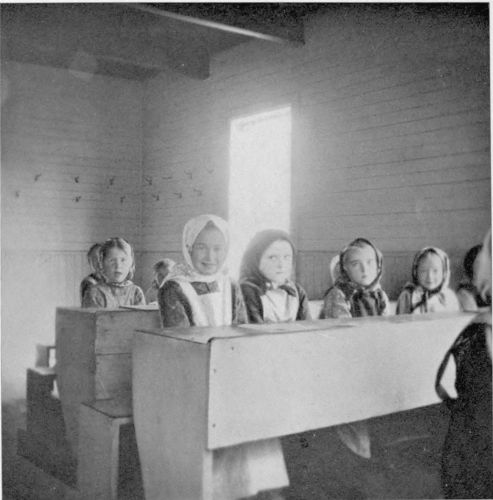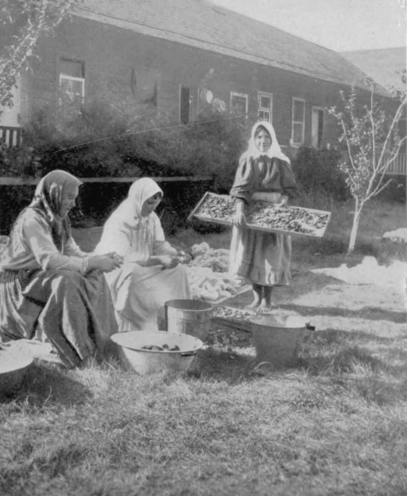 Everywhere children accompany their elders, naturally imitating with their tiny fingers the tasks of the larger hand. Thus, quite easily, the children learn, and, learning, look upon work as pleasurable. A Doukhobor child is seldom or never told to do any especial task. They simply fall in, of their own accord. The Douks are very gentle with their children and a child is as free to speak, and is listened to with as much courtesy, as an elder. This applies in “church” as well as in the daily life.