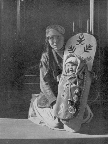 Passing to and fro here and in the salmon-factories one begins to realize that the Japanese women share the work on the fish with the men. One might even call these little women “the ’longshoremen of Salmon” as they stand at the tables,—groaning under the weight of sockeye and its lesser brethren—their babies tied to their backs with a soft shawl, in the same way that the Cree mother{241} carries her baby in a tikanagan. Many a lullaby is crooned while the skilful brown fingers place the juicy steaks in the little flat tins. The gentle rocking of the mother’s swaying figure sends the baby to sleep more effectively than any cradle. And the mother and her baby are together through the long day of toil.