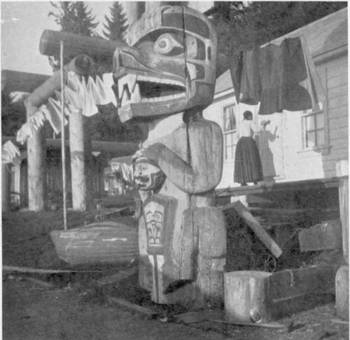 Part of this spirit is due to the wildness of nature hereabouts, to the high-reaching mountains, the low-hanging, encircling mists, the dark woods, and, in the rainy season, the general atmospheric wetness clinging to the nearer distances; but specifically it is due to other things, things which the natural setting helps to accentuate and for which it forms a splendidly effective stage. Merely to mention Alert Bay is to think of Indians. For this little trading-post, now grown to prime importance as a Pacific coast port-of-call, has filled a high place in coastal Indian life from time immemorial.
