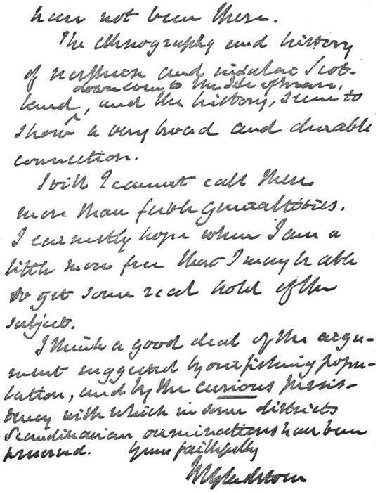 I think a good deal of the argument suggested by our fishing population, and by the curious persistency with which, in some districts, Scandinavian terminations have been preserved.