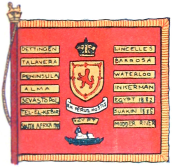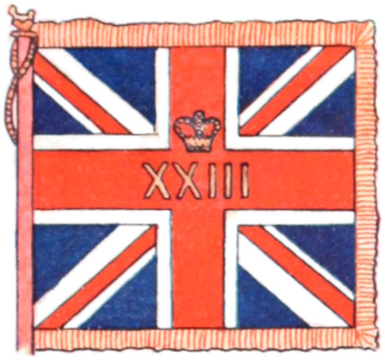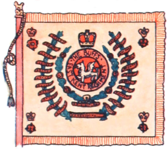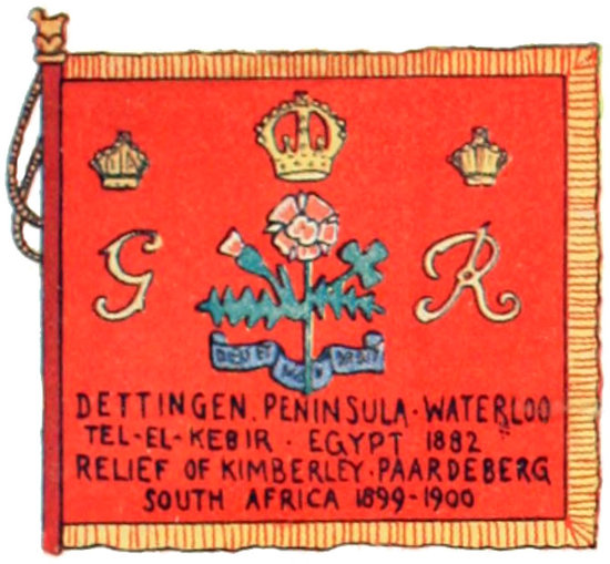 Ever since the time when the Romans went into battle, inspired by the vexillum or labarum, military flags or colours have commanded a respect bordering almost on the sacred. Our own history is crowded with incidents which go to prove this contention. Who is there, for instance, who has not heard of the gallant deeds of Melvill and Coghill, two heroes who lost their lives in an endeavour to preserve the Queen’s colour after the disastrous Zulu encounter at Isandlwana? Or let us take the case of Lieutenant Anstruther, a youngster of eighteen, in the Welsh Fusiliers. In defending the colour he carried up the treacherous heights of the Alma, a shot laid him low, and eager hands snatched up the 2emblem without a moment’s hesitation lest it should fall into the possession of the enemy. No one thought of the danger which might overtake them whilst guarding the cherished but conspicuous banner; all were resolved to perish rather than it should be wrested from their grasp. And, let it be said, five men won the Victoria Cross that day at the Alma for their gallant defence of the colours. At the battle of Albuhera, in 1811, a colour of the 3rd Buffs was carried by Ensign Thomas. The French attacked in great force, and, surrounding Thomas, called upon him to give up the silken banner. Thomas’s answer was discourteous, but to the point; a moment later he lay dead, and the French bore away the flag with triumph. To the credit of the Buffs, we must add that the emblem was back in their possession before nightfall. These are just a few cases in which men have been ready, and even eager, to make the great sacrifice rather than lose their colours. They could be readily multiplied a hundredfold.