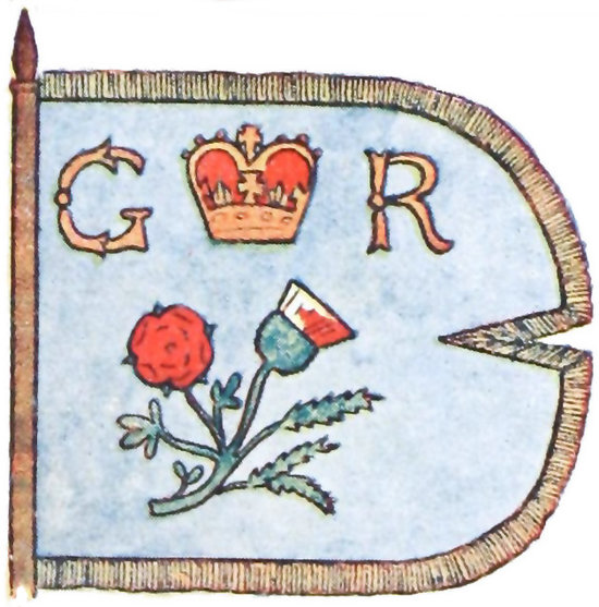 This warrant is of much interest; it tells us that the early standards were painted and not embroidered; that they were made of white or red material—white was a sign of superiority, whilst red pointed to extravagance, as it was more costly than blue, yellow, etc.; and it told us that the Guards were to display the Royal badges, which they do to this day. (All these badges are dealt with in a separate chapter.)