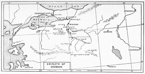With the other Turkish tribes, which succeeded in establishing independent emirates, the Osmanlis did not come into contact until the reign of Orkhan. So it is unnecessary to trace their fortunes here.[6]