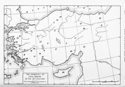 [753] Shehabeddin, 338, 358, 366; Ibn Batutah, ii. 275, 277; Reclus, Géog. univ., ix. 633, 645; Baedeker, Kleinasien, 2. Aufl., 390. Mas-Latrie, Trésor de Chronologie, makes an error in extending the northern boundary of Denizli, which he calls Thingizlu, to the emirate of Marmora.
