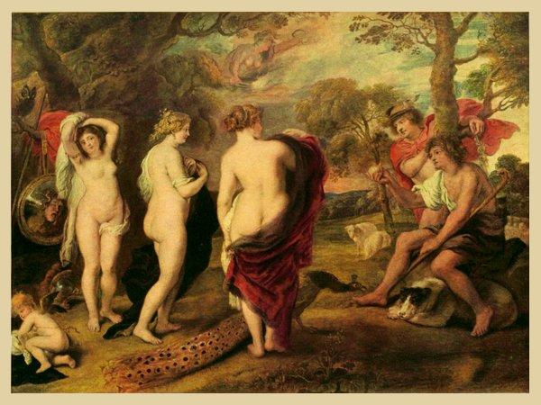 L’allégorie n’est donc qu’un prétexte et l’on s’en aperçoit bien. Reynolds l’a traitée à la mode du temps, conformément aux canons intronisés par la peinture française et surtout par Boucher. Le paysage est un joli décor de feuillages dorés par l’automne et l’on y voit, derrière la divinité armée de son flambeau, un magnifique rideau de pourpre tendu entre deux arbres, que l’on devine posé là comme un écran pour rehausser l’éclat de ces beautés blondes. Toutes les concessions ont été faites au goût de l’époque; Reynolds n’a pas même oublié l’aiguière ciselée que l’on aperçoit invariablement, on ne sait trop pourquoi, dans toutes les compositions allégoriques de ce temps.