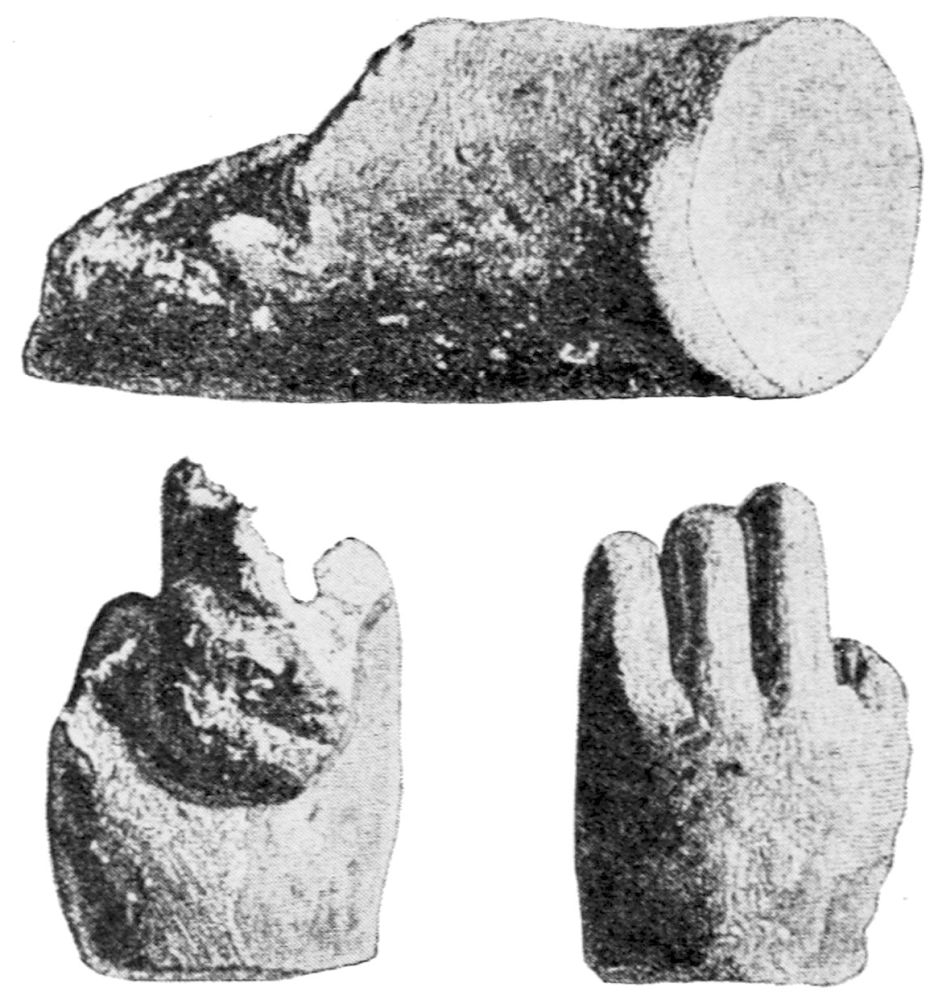 “The primates at the same time sent me the three hermae (Nos. 6, 7 and 8) which were still at Castro, and a left foot in marble (No. 9) which had been found in the neighborhood of the field of Yorgos{13} lower down toward the valley where the burial caves are.