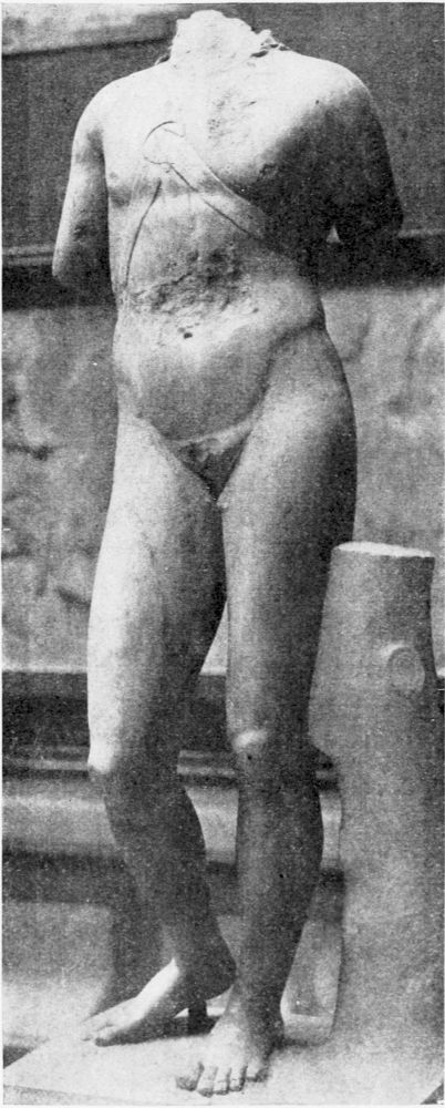 Since the arms have been broken off and lost, the artist’s conception with regard to the posture can only be surmised. The face is calm and without passion. It wears a commanding expression, apparently with a suggestion of surprise, even of self-defence.{25}