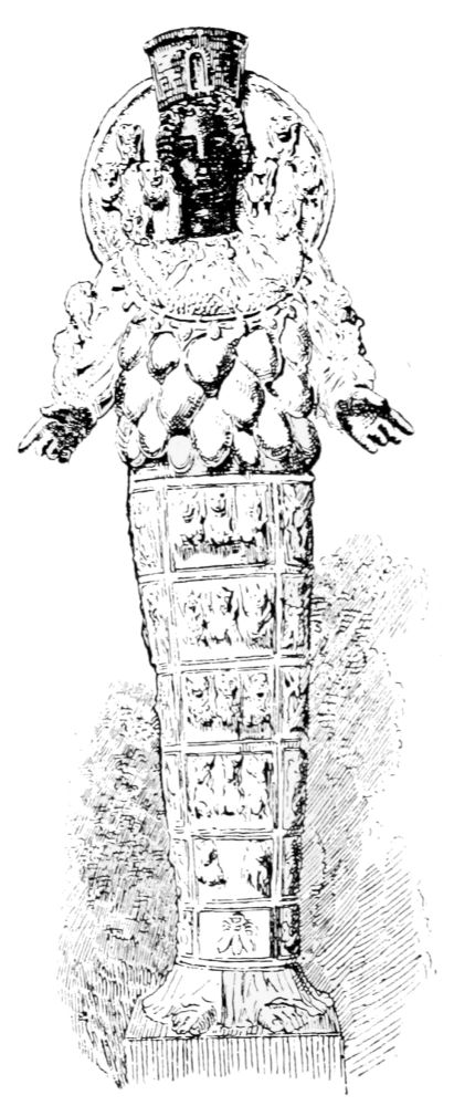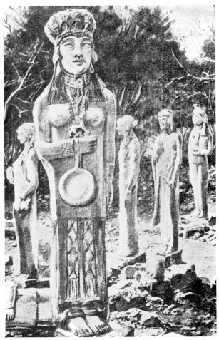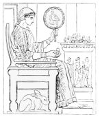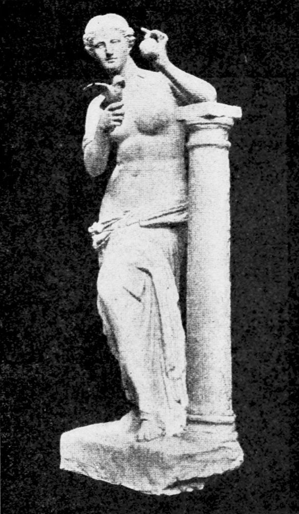 Mr. Geskel Saloman, a Swedish archeologist, also places a column at her left side and uses it for her elbow to rest on. In consideration of some ancient descriptions of a dramatic ceremony performed{36}