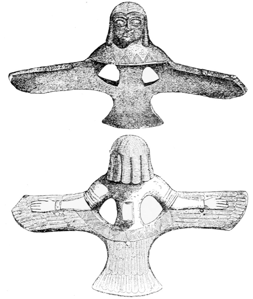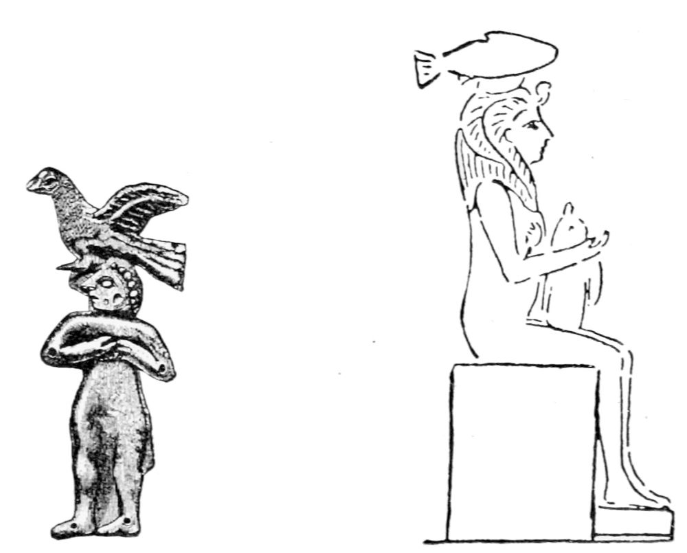 [20] Perhaps the dress of wings is an expression of the belief that the soul is winged, found also in Egypt, where the soul of man is compared to a human-headed hawk, in which form it is at liberty to visit other places.