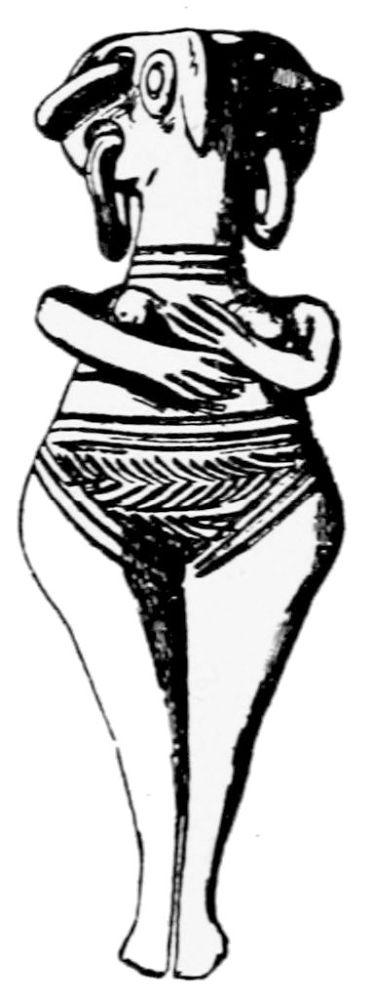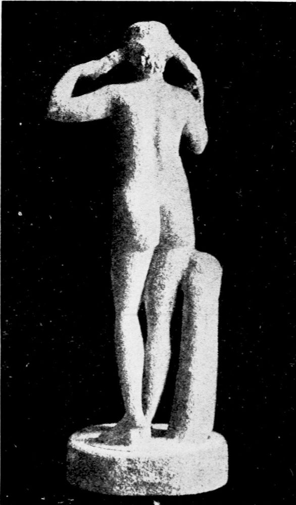 The goddess (if we may so call her) stands before us erect in queenly dignity. Her dress is falling down leaving the upper body entirely uncovered, and yet in spite of the nudity of the figure we are struck with its unparalleled purity and nobility of expression.