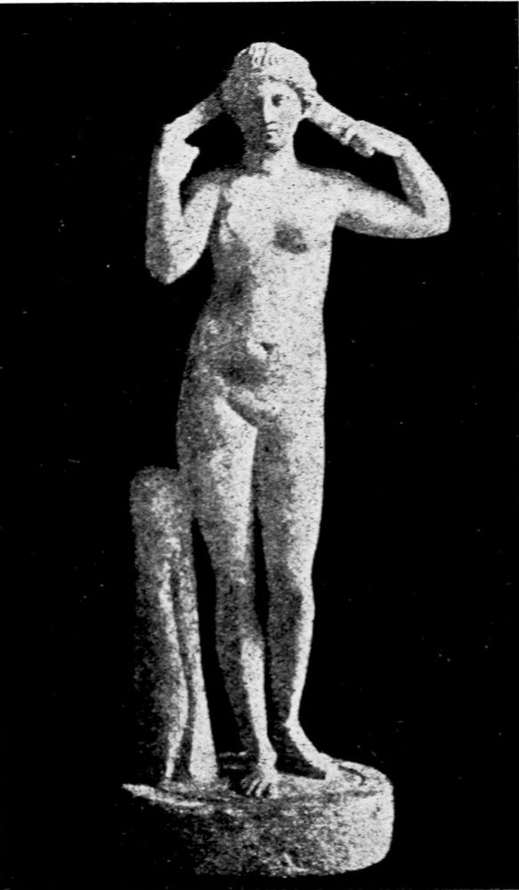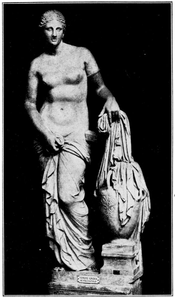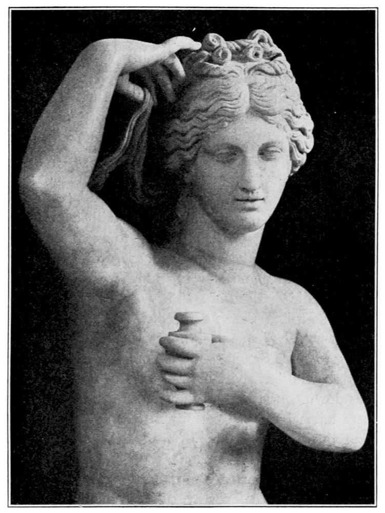 There is nothing frivolous about her, no coquetry, nothing amorous. Her eyes betray not the slightest touch of a sensual emotion, not that sentimental moistness, τὸ ὑγρόν as the Greeks called it, and thereby the artist succeeded in transfiguring naked beauty by a self-possessed chastity unrivaled in the art of statuary.