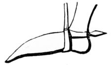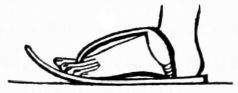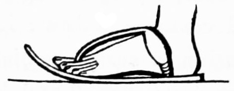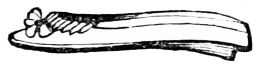 The sandals with curved toes, alluded to above, and which frequently appear upon Egyptian sculpture, and generally upon the feet of the superior classes, are exhibited in the woodcut here given: and in the Berlin museum, one is preserved of precisely similar form, which has been engraved by Wilkinson, and is here copied, pl. I., fig. 1. It is particularly curious, as showing how such sandals were held upon the feet, the thong which crosses the instep being connected with another, passing{13} over the top of the foot and secured to the sole, between the great toe and that next to it, so that the sole was held firmly, however the foot moved, and yet it allowed the sandal to be cast off at pleasure.