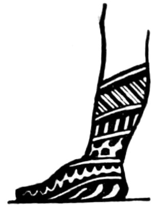 The elegantly-ornamented boot here given, is copied from a Theban painting, and is worn by a{14} gayly-dressed youth from one of the countries bordering on Egypt: it reaches very high, and is a remarkable specimen of the taste for decoration, which thus early began to be displayed upon this article of apparel.