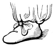 There was a form of shoe worn at this early time, in which the toes were entirely uncovered, and of which an example is given in plate II., fig. 3. It is copied from a marble foot in the British museum. This shoe appears to be made of a pliable leather, which fits closely to the foot, for it was considered as a mark of rusticity to wear shoes larger than the foot, or which fitted in a loose and slovenly manner. The toes in this instance are left perfectly free; the upper leather is secured round the ankle by a tie, while a thong, ornamented by a stud in its centre, passing over the instep, and between the great and second toes, is secured to the sole in the manner of a sandal. In order that the ankle-bone should not be pressed on or incommoded in walking, the leather is sloped away, and rises around it to a point at the back of the leg.