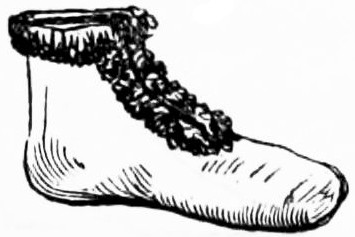 BEFORE the arrival of the Saxons, who have transmitted to us many valuable manuscripts abounding in various delineations of their dress and manners, we shall not find much to engage the attention where it is our present object to direct it, the history of the coverings for the feet. There is, however, little doubt that the rude skin-shoes, worn by the native Irish and the country people of Rome, was the simple protection adopted in this country in the earliest times. Shoes of this material are found in all nations half-civilized, and the ease with which they are formed by merely covering the sole with the hide of an animal, and securing it by a thong, must have had the effect of insuring its general use. Naked feet would, however, be preferred in fine weather, and when shoes were worn, they were generally of a close, warm kind, adapted to our climate; the most antique representations of the Gaulish native chiefs,{31} as given on Roman sculpture, and which may be taken as general representations of British chiefs, may be received as good authorities, their resemblance to each other being so striking as to draw from Cæsar a remark to that effect.