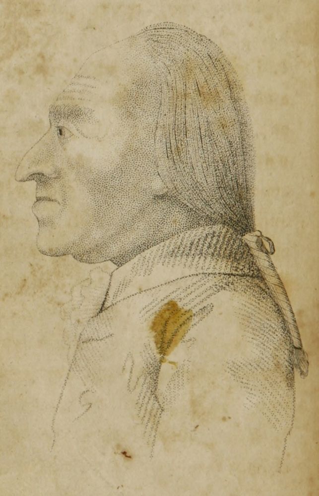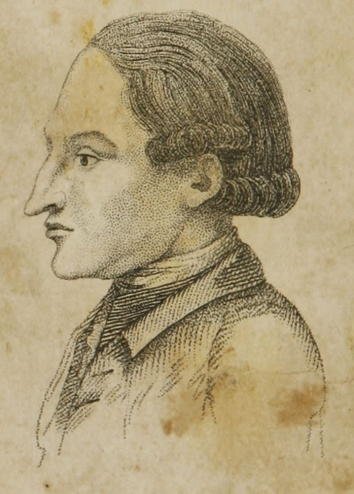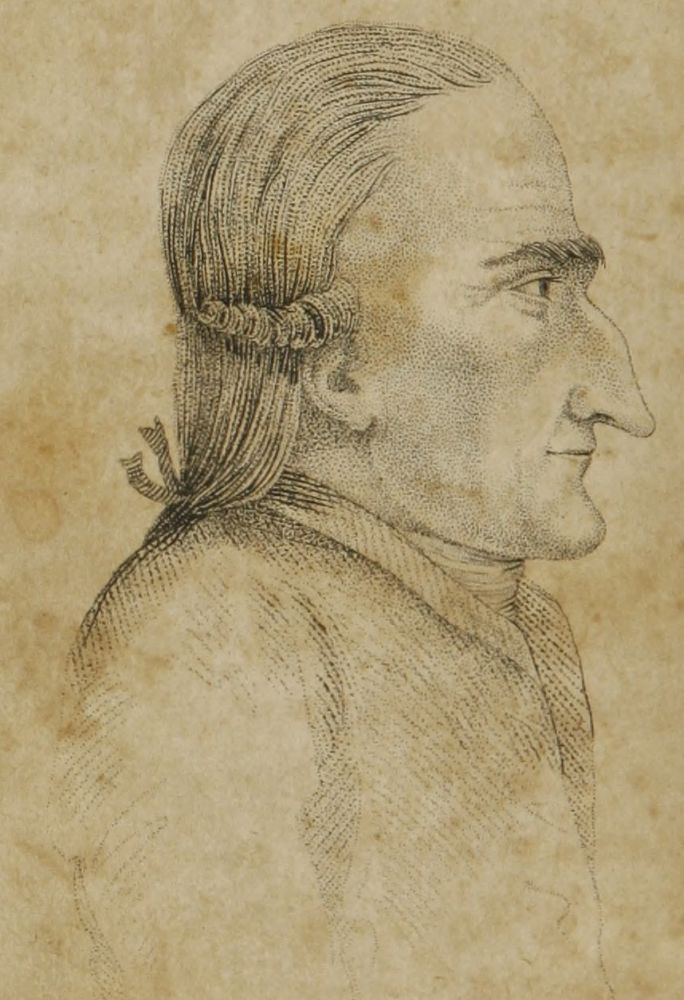 A receding forehead, eyes black, and full of fire, their shape, the form of the upper eyelid, an aquiline nose, and a large and projecting chin, are here characteristic of a passionate man. The chin designates an enterprising character, the nose denotes an ardent imagination, and lively passions, beyond the control of reason, and the forehead affords no inference of a reflecting mind.