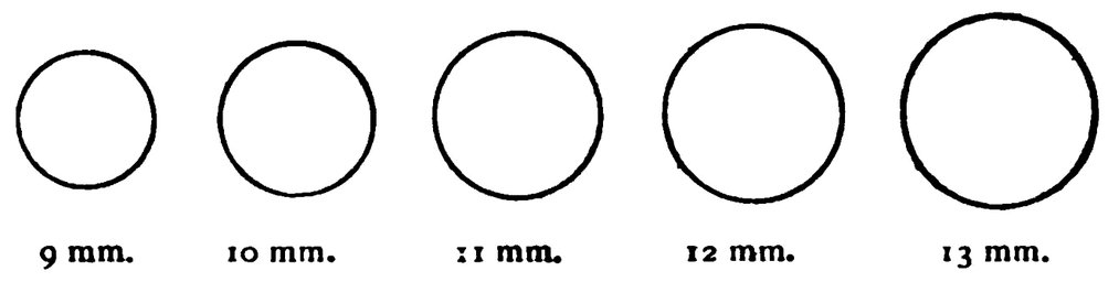 15. Tips are made in France, and so are sized by the Metric System. A millimetre is as nearly as possible one-twenty-fifth of an inch.