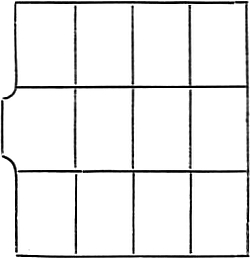 Einfache Tafeln in Hoch- oder in Querformat werden dem Texte so angepaßt, daß die Ränder des beschnittenen Buches genau parallel mit den Rändern des Bildes laufen, jedoch mit der Maßgabe, daß der Raum im Rücken, also der innere weiße Steg (Rand) etwa um ⅓ weniger breit ist als der äußere, der obere ebenfalls etwa um [20]⅓ weniger breit als der untere.[1] Zu diesem Zwecke ist es notwendig, die Höhe und die Breite des Textes je auf einen Streifen Papier zu übertragen; hat man viele Karten in ähnlicher Größe, so ist ein Streifen Karton oder ein dünnes hölzernes Lineal dazu sehr geeignet. Diesen Maßen entsprechend werden die Karten auf Größe abgerichtet. Man berechnet genau, wie breit später das Buch beschnitten werden muß, überträgt rechts und links vom Breitenmaß, oberhalb und unterhalb vom Höhenmaß die Breite des weißen Randes ebenfalls auf den Maßstab, so daß in dieser Weise jetzt die genaue Höhe und Breite des Bildes festgestellt ist mit den Vormerkungen für die Textgröße im Werke. Diesem Maße entsprechend wird das Bild abgestochen, d. h. abgemessen und das Maß mit einer Zirkel- oder Messerspitze angedeutet. Zu diesem Zwecke legt man den Maßstreifen mitten quer, bezw. auch in der Höhe quer über das Bild. Am Rücken wird das Maß zweimal übertragen, einmal oben und einmal unten und diesem entsprechend das Bild abgeschnitten; oben genügt eine Marke, die Tafel wird hier einfach winkelig geschnitten; vorn und unten läßt man die Ränder stehen, da das Kupfer beim Beschneiden des ganzen Buches mitbeschnitten wird. Bei Hochformat ist die Lage, in der das Bild ins Buch kommt, von selbst gegeben, bei Querformat muß der untere Rand nach dem Schnitt, der obere nach dem Rücken zu gerichtet werden. Ebenso pflegt man, abgesehen von dem Titelkupfer, jedes Bild in das Buch recto einzufügen, d. h. es deckt im aufgeschlagenen Buche die rechte Seite.