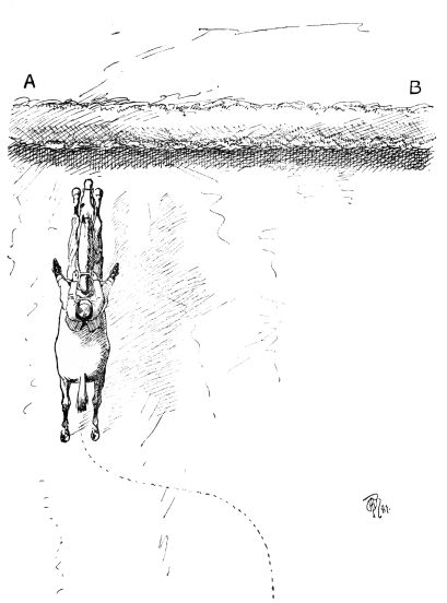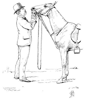Association of ideas in breaking.—As association of ideas is the most valuable aid we possess to memory, we should largely utilise the practical working out of this principle in breaking. The intelligent obedience to the voice of their driver, in turning, stopping, going on, and in varying their paces, displayed by many cart-horses, is a common instance; as is, also, that of the ’bus horse, who starts onward the moment he hears the door of the conveyance slammed-to by the conductor. A friend of mine had a horse that became so increasingly difficult to mount, that at last he found it impossible to get on to him by ordinary means, on account of the animal “break{13}ing away” the moment he attempted to put his toe into the stirrup. Living near a river, he hit on the expedient of placing the horse with his off side “broad-side on,” and close to, a steep part of the bank, and then attempting to mount on the near side. As usual, when the man’s foot touched the iron, the horse swung round, and, on this occasion only, fell down twenty feet into the river. The effect of this lesson, which was entirely harmless, was to make the animal perfectly steady to mount, so long as he stood on the bank of the river, in a position similar to that from which he had had his tumble; but he was just as difficult to mount as ever, anywhere else. Such a method, to be perfect, should be of universal, and not of local, application. I may add, with reference to my remarks on page 4, that my friend’s unruly brute of a horse would, by many, be deemed a nervous creature, and a worthy recipient of any amount of kindness and petting. The most effective means of applying the{14} principle of association of ideas to the breaking of vicious horses, is one by which the animal arrives at the right conclusion from wrong premisses; as with Pratt’s rope-twitch (see page 113), when making a horse steady to mount. Evidently mistaking the cause of the pain inflicted on him by its employment, he connects the idea of punishment with the word “steady,” and not with the application of the cord. Were he able to argue rightly on this subject, he would remain quiet only when the twitch was on, and would entirely disregard the verbal admonition, for which he entertains such marked respect.