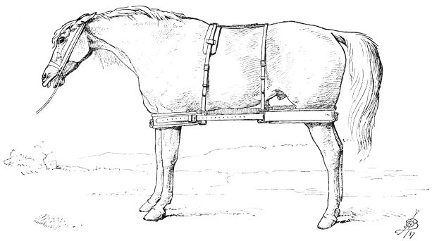 Breaking by kindness alone.—While fully admiring the kindness of heart of those enthusiasts who regard a horse as a friend to be won by affection, I must say that the better plan for making him a useful member of society, is to treat him as a servant who has to be taught his work, and from whom implicit obedience has to be{37} demanded. Until he does his work honestly and well, the less petting he gets the better; for he is an animal that is very apt to become headstrong and fractious, by a small amount of indulgence in his own way. I entirely deprecate any fighting with the horse, or punishment with whip and spur, which he can resist; but I insist on the necessity—after proving to the horse that he has nothing to fear, and after teaching him to understand one’s wishes—of shewing that he must obey. I shall endeavour, in due course, to explain to the reader how such obedience can be peremptorily enforced.
