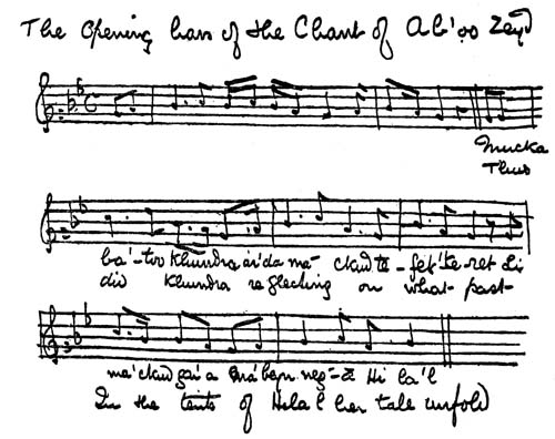 The Opening bars of the Chant of Ab’oo Zeyd