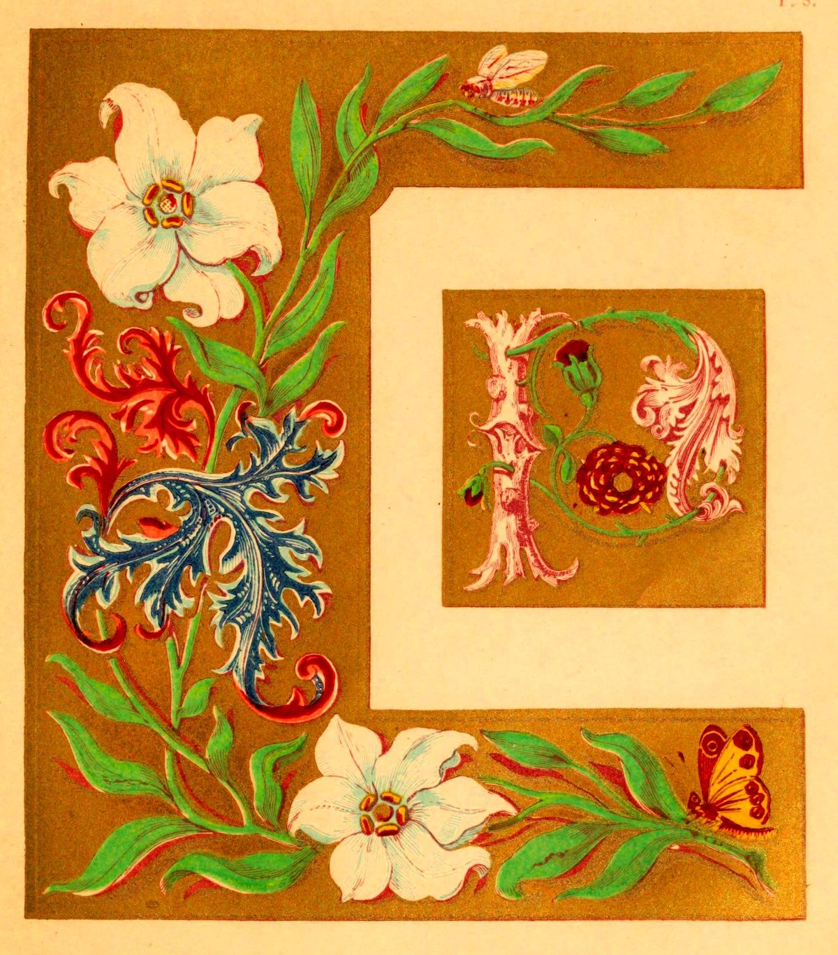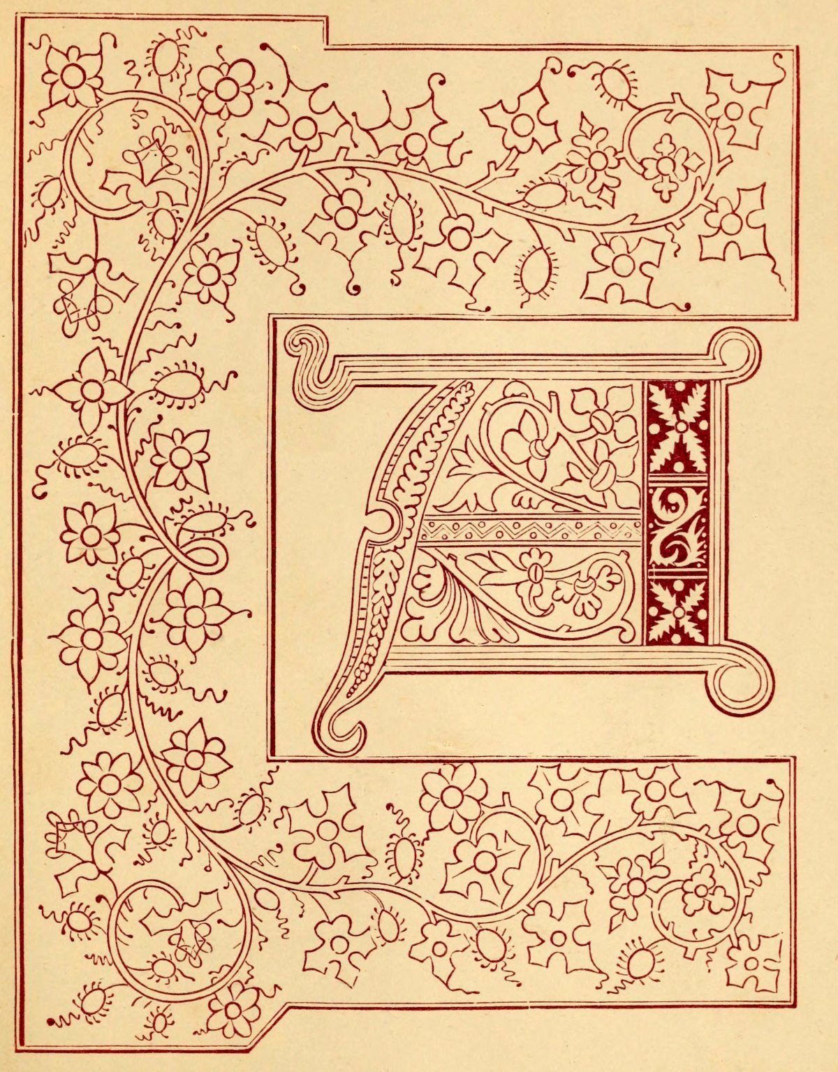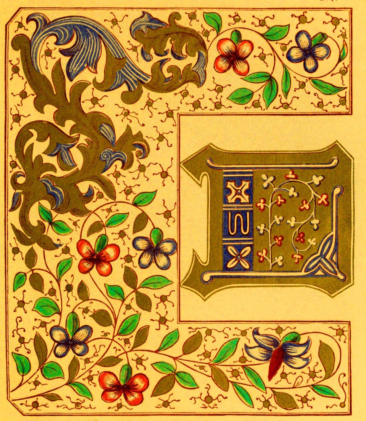 The whole of these resolve themselves into two leading principles: the one where the initial itself is the illumination, and its outline and component parts are the subject of treatment. The other, where the initial remains in its simplicity of outline, and the ornamentation is bestowed on what surrounds it, or on that on which it is imposed.