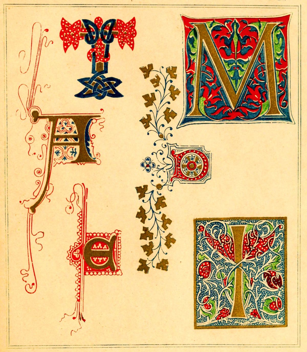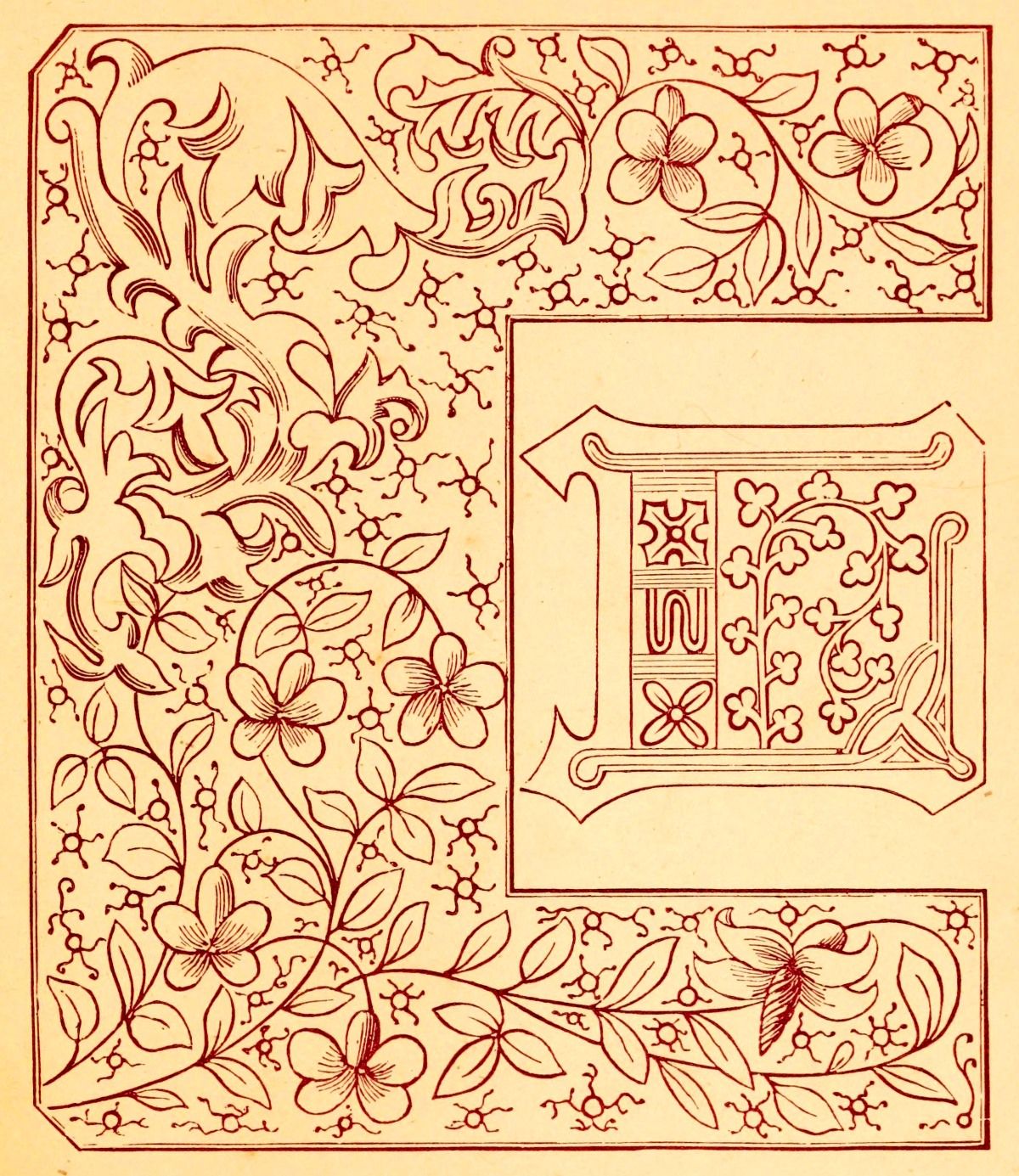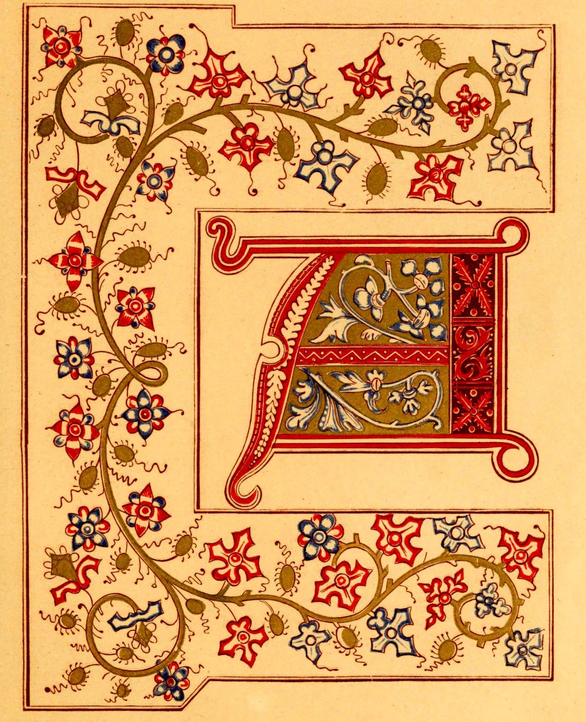 The whole of these resolve themselves into two leading principles: the one where the initial itself is the illumination, and its outline and component parts are the subject of treatment. The other, where the initial remains in its simplicity of outline, and the ornamentation is bestowed on what surrounds it, or on that on which it is imposed.