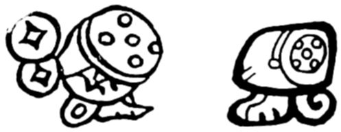 116. Relacion de la Villa de Valladolid (1579), Chap. XIV. I am aware that some variants of this glyph have a striking resemblance to a penis flaccidus cum testiculis; but after close comparison I have rejected this rendering. Thomas sees in the two shells “tortillas.”