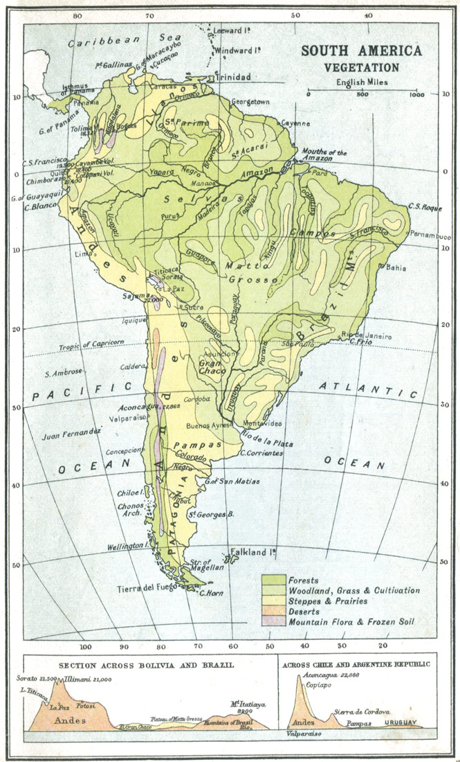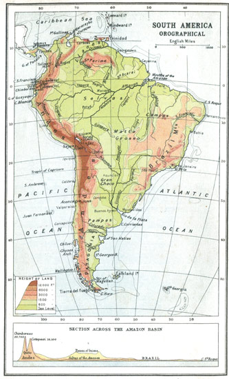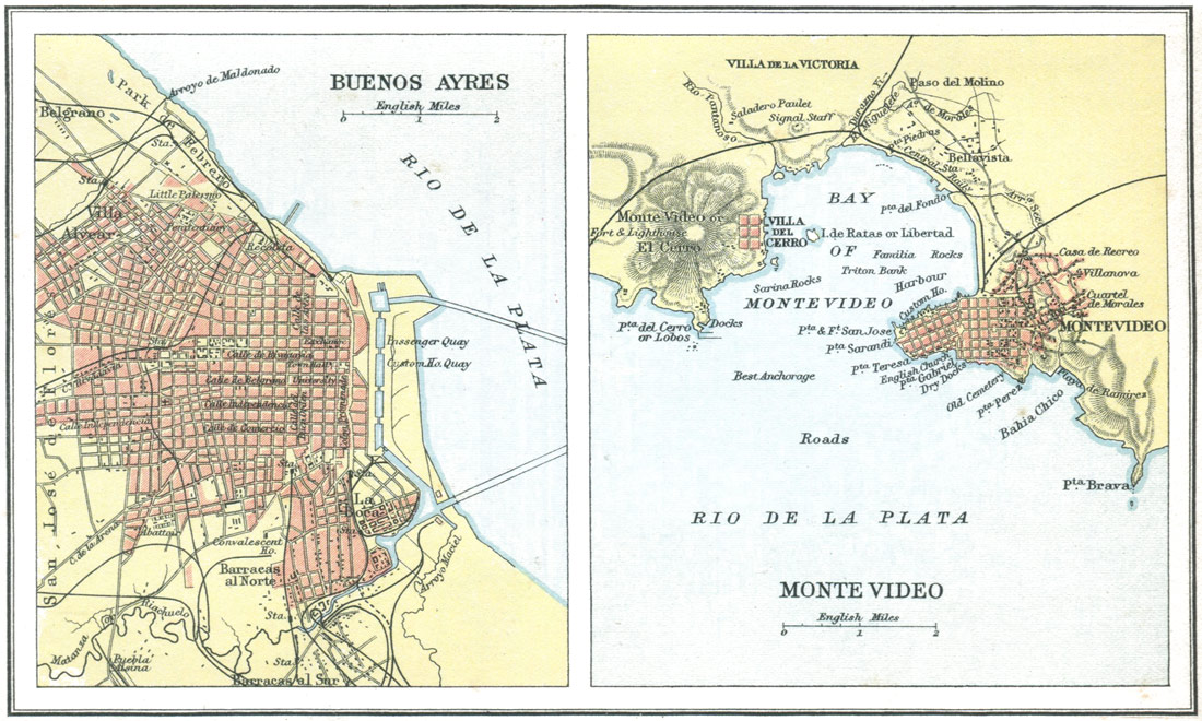 As for the local associations that have become familiar in American literature, you have a chart of the Concord neighbourhood showing Walden Pond, Forest Lake, Lexington, and Punkatasset Hill, associated with the name and fame of Ralph Waldo Emerson, Nathaniel Hawthorne, and H. D. Thoreau. Fenimore Cooper recalls the old Indian Territory as it was in the wild prime of the Red Men; and you travel from the land of "Hiawatha" in Longfellow's poem southwards to the Mexico and Peru of Prescott, and then pause over something more amazing than any record in imaginative verse or prose—the plain statistics figured in the map of South America, and the emergence of Buenos Ayres with its million and a quarter inhabitants, Rio de Janeiro with its 860,000, San Paulo with 350,000, and Santiago with 330,000. Here are the elements of an immense new Latin civilisation which is going to count, and count enormously, just as China and its millions are bound to count enormously in the twentieth century.