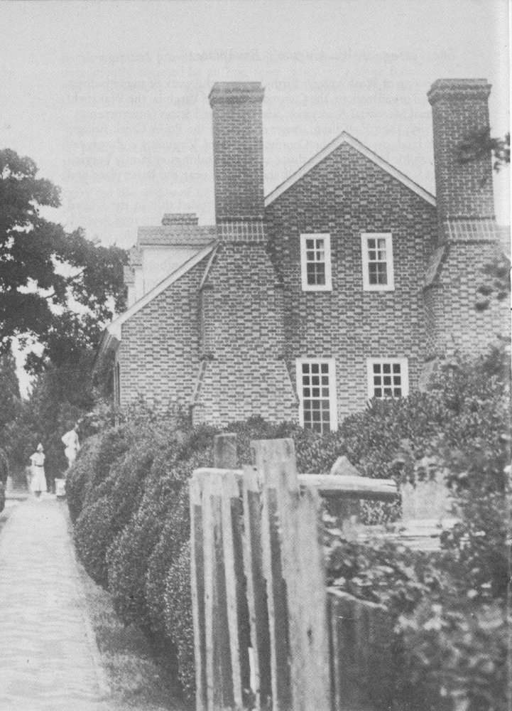 But the restored plantation is more than a monument to the people who saved it. It is a memorial to the boy who played in the red brick house by the tidal creek, in the stables, barns, tobacco sheds, and other outbuildings; in the smokehouse and summer kitchen; in the spinning and weaving house and buttery; and near the forge where the blacksmith beat red-hot iron rods into tools and hardware and farm implements. The restored plantation is a shrine to the young boy with reddish-brown hair and blue eyes who romped through the green meadows and fields of corn, and watched the growing wheat, rye, and tobacco; the youth who picked luscious figs, climbed the gnarled apple trees, and played games in the cedar grove of that day.