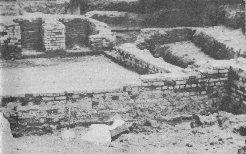 Foundation of small brick structure unearthed in 1936. Use of structure unknown.