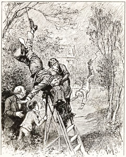Then everybody went at me in the most dreadful way, except Sue, who was holding Mr. Travers's head. They said the most unkind things to me, and sent me into the house. I heard afterwards that father got Mr. Schofield's boy to climb up and cut Mr. Travers and Mr. Schofield loose, and they fell on the gravel, but it didn't hurt them much, only Mr. Schofield broke some of his teeth, and says he is going to bring a lawsuit against father. Mr. Travers was just as good as he could be. He only laughed the next time he saw me, and he begged them not to punish me, because it was his fault that I ever came to know about that kind of trap.
