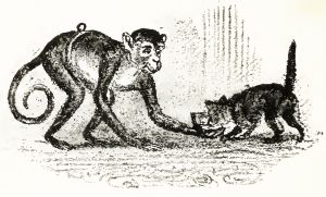 He chased her along the fence into the front yard where she made a dive under the front piazza. Sitting Bull came round the corner of the house just flying, and I close after him. It happened that Mr. Martin was at that identicular moment going up the steps of the piazza, and Sitting Bull mistaking one of his legs for the cat jumped for it and had it in his teeth before I could say a word.