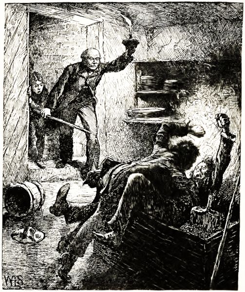 So I stood close up by the wall till he came near me, and then I gave him a splendid bang over the head. It sounded as if you had hit a fellow[Pg 193] with a club, and Mr. Travers dropped to the floor with an awful crash, and never spoke a word.