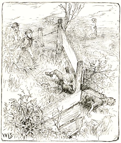 Well, we waited for that boy and the dog till six o'clock, and they never came. When I got home everybody wanted to know what had become of Harry. He was gone and[Pg 208] the dog was gone, and nobody knew where they were, and Aunt Eliza was crying, and said she knew that horrid dog had eaten her boy up. Father and I and Mr. Travers had to go and hunt for Harry. We hunted all over the town, and at last a man told us that he had seen a boy and a dog going on a run across Deacon Smith's corn-field. So we went through the corn-field and found their track, for they had broken down the corn just as if a wagon had driven through it. When we came to the fence on the other side of the field we found Harry on one side of the fence and the dog on the other. Harry had tied the dog's rope round his waist, and couldn't untie it again, and the dog had run away with him. When they came to the fence the dog had squeezed through a hole that was too small for Harry, and wouldn't come back again. So they were both caught in a trap. How that dog did pull! Harry was almost cut in two, for the dog kept pulling at the rope all the time with all his might.