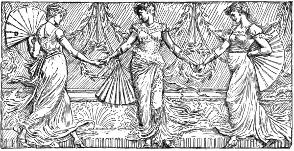 In regard to Manchester, spoken of on page 119, another practical step has been taken inix the much-needed direction of school-decoration. Through the public spirit of Mr. Grant, one of her citizens, who has found money enough to start the work, students of the Municipal School of Art are enabled to carry out on a large scale mural paintings upon the upper walls of the class-rooms in one of the principal primary schools. The subjects have been enlarged from some of my coloured book designs such as “Flora’s Feast.” Such work might not only be made to bear most helpfully on the general work of education, but in itself be an important side of school influence, since by means of large simple typical mural designs great historical events and personages, as well as natural form, might be made familiar to the eyes of children at the same time that their sense of beauty and imaginative faculties were appealed to.